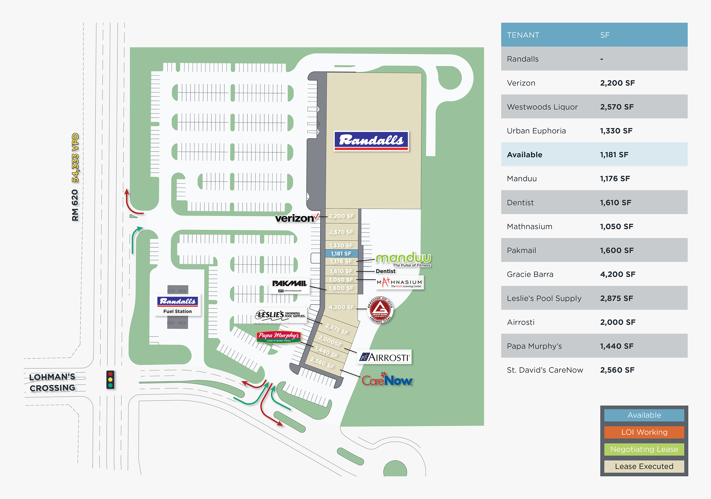 Exciting opportunities for lease at the Vista Ridge Shopping Center, located at the main entrance of Lakeway, TX